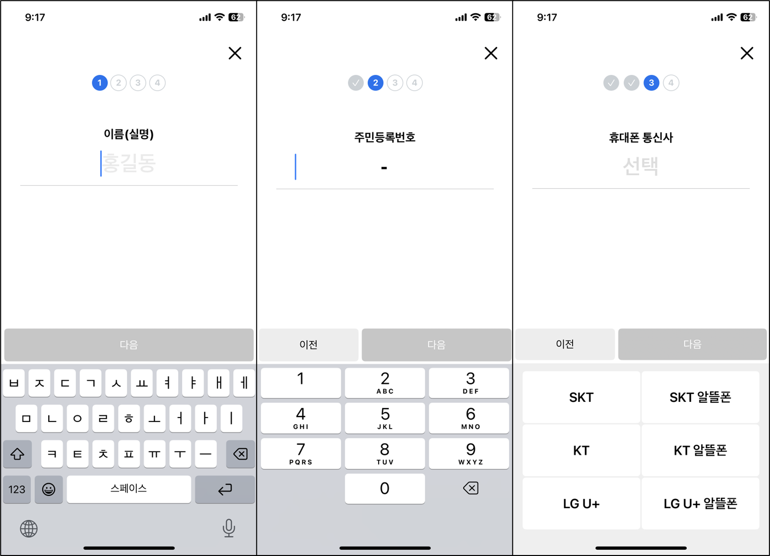 4~5. 차례대로 이름과 주민등록번호를 입력하고 [다음] 버튼을 누릅니다.
