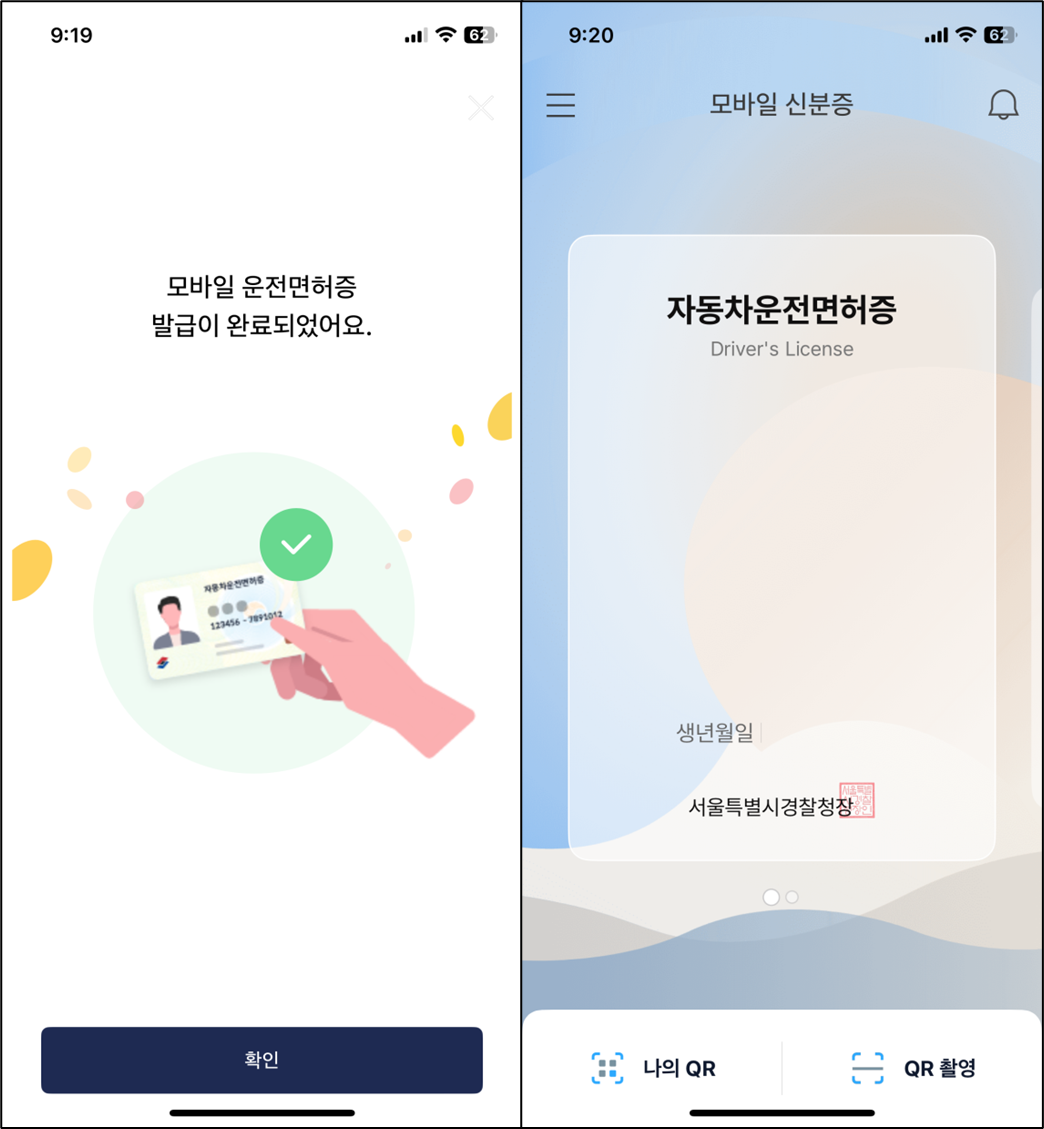 발급된 모바일 운전면허증을 차례대로 확인하실 수 있습니다.